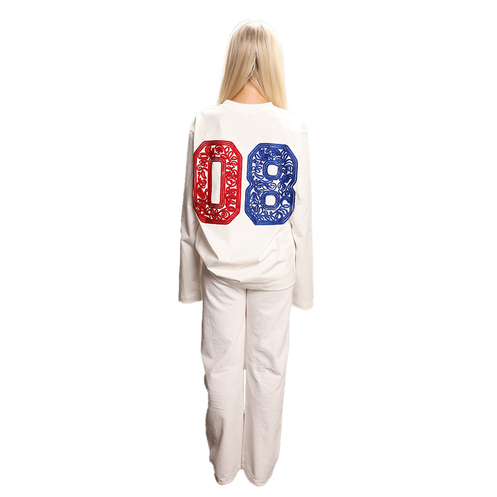 The Eternal Longsleeve, crafted from a premium blend of 85% cotton and 15% linen, combines natural breathability with a textured, organic feel. The hand-embroidered everlasting “08” on the back represents endurance and identity. Designed in a boxy, oversized fit for a strong, relaxed silhouette. Made from natural fibers for elevated everyday wear.